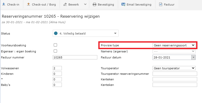 Je hebt een afrekening waar meerdere reserveringen op staan. Daarvan wil je één reservering verwijderen. Ga naar: de desbetreffende reservering > bewerk reservering > provisietype op ''geen'' zetten > factuur herberekenen