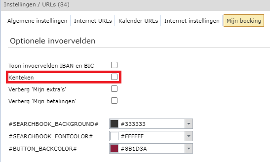 Vergeet dan ook niet om het kenteken aan te vinken bij instellingen/URLs.