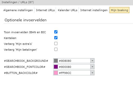 Reserveringen > instellingen/URLs > internetinstellingen > mijn boeking